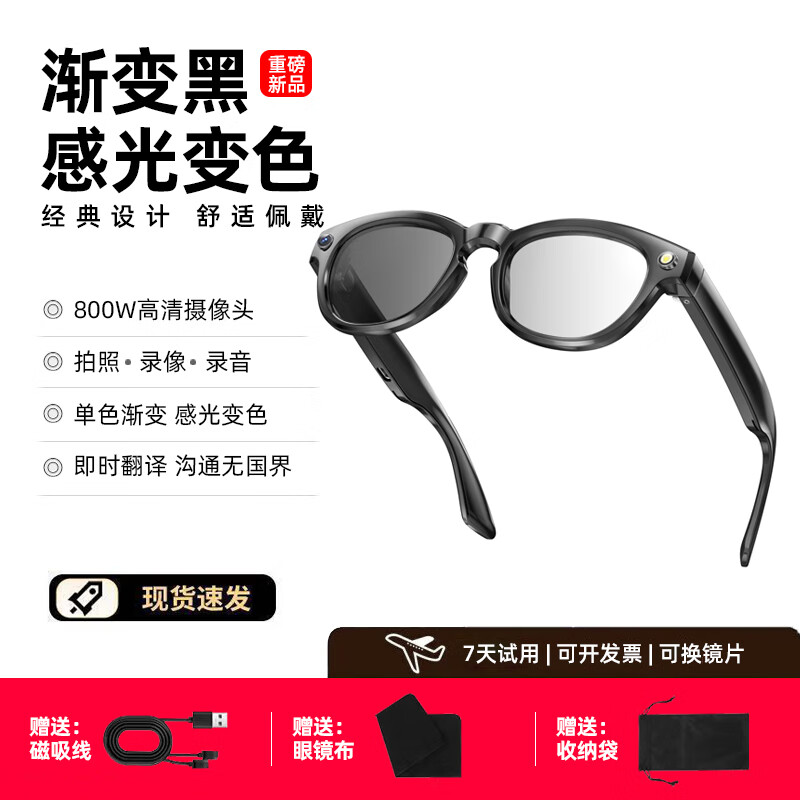智能AI眼镜 摄像拍照翻译录音录像听歌拍照视频眼镜 无线智能眼镜 蓝牙语音通话眼镜 拍照翻译眼镜 【800W拍摄/识别/翻译】防蓝光/咖色/墨镜